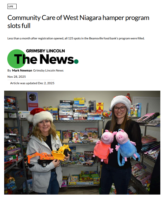 Niagara-on-the-Lake Local features new CCWN warehouse benefitting FEED Niagara members | Feb 11, 2026