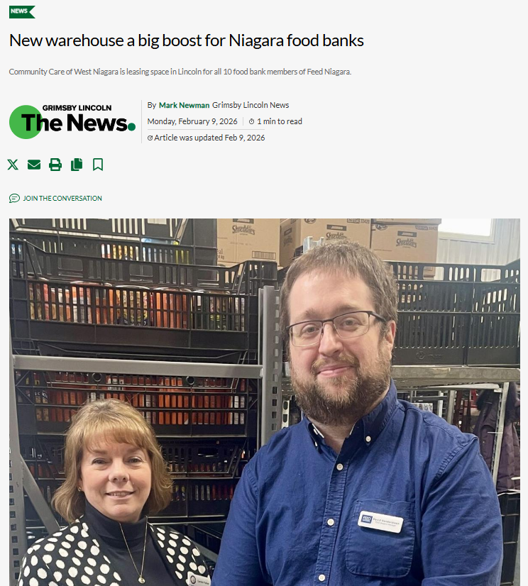 Niagara-on-the-Lake Local features new CCWN warehouse benefitting FEED Niagara members | Feb 11, 2026